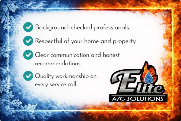 Our team at Elite AC Solutions works hard year-round to keep your homes and businesses comfortable. From our technicians and installers in the field, to our office staff and management team, every member of the Elite team is committed to dependable service, honest communication, and quality workmanship.